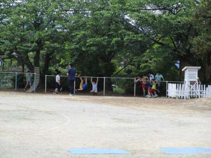 鉄棒で遊ぶ子供たちが増えています。今日も元気です。