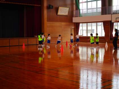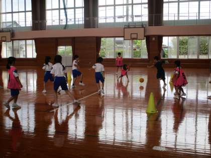 1・2・3年生は、今、体育科の学習で「転がしドッジボール」をしています。ねらいを定めてボールを転がしたり、当たらないように必死に逃げたりしていました。