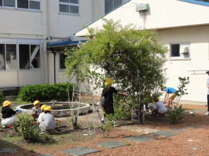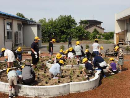 全校のみんなで、MTガーデンに花の苗を植えました。縦割り班ごとに場所を分担し、グループで作業をしました。花を植え、MTガーデンが明るくなりました。
