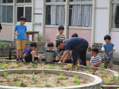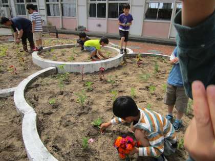 1・2年生は、生活科の時間に、全校のみんなで植えた苗の花を摘んでくれました。苗が大きく育ち、きれいな花がたくさん咲くといいですね。