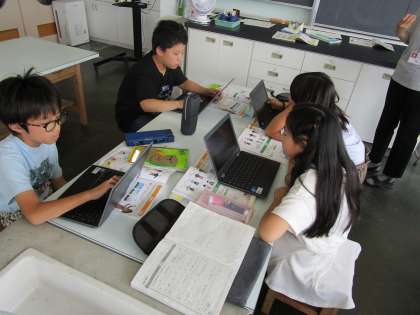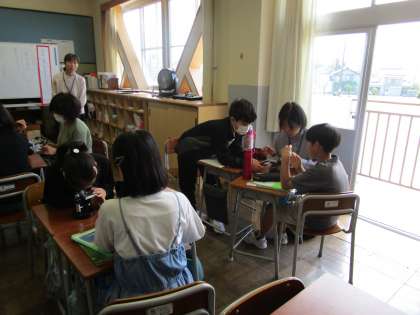 理科の学習をしていました。4年生は、1日の気温の変化を調べ、天気との関係を考えています。5年生は、育てているメダカが産んだ卵を顕微鏡で観察しています。