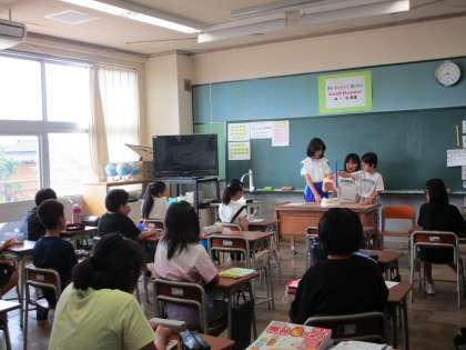 スマイル委員会では、「歯磨き名人になろう」という取組を行います。第1回は、4・5年生教室です。4・5年生は、歯磨きのポイントを聞き、実際に歯磨きをしました。大切な歯や口の健康を守っていきたいですね。
