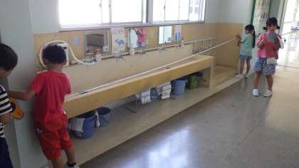 算数科では、、まきじゃくを使って、長い長さを測る学習を進めています。廊下の長さや体育館の長さ等、グループで協力して測りました。「予想よりも長かった」「もっといろいろな場所を測ってみたい」という感想が出てきて、家庭学習につなげる児童もいました。