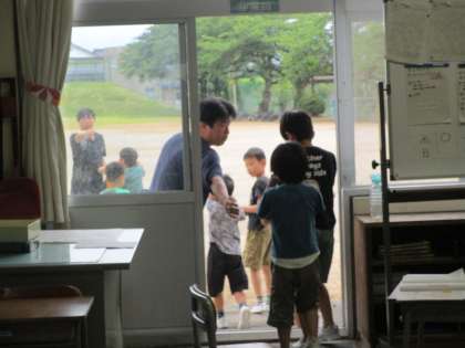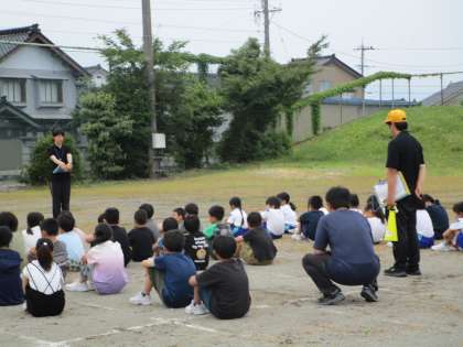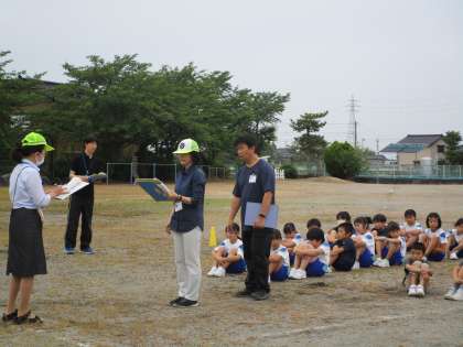 今日は、地震発生後、給食室より出火したという想定で、避難訓練を行いました。万が一のときに、落ち着いて安全に避難できるように、毎月1回、想定を変えて実施しています。