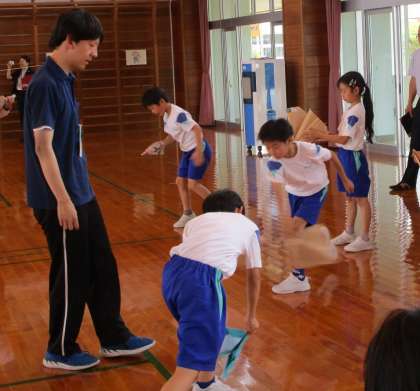 富山市教育委員会等より先生方が来校されました。子供たちの学習や生活の様子を見ていただきました。1・2・3年生体育科の合同学習では、遠くに投げられるよう、自分たちでコーナーを選んで一生懸命練習していました。