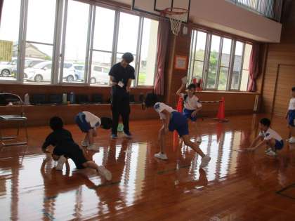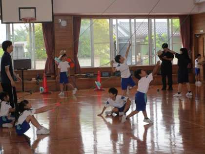 富山市教育委員会等より先生方が来校されました。子供たちの学習や生活の様子を見ていただきました。1・2・3年生体育科の合同学習では、遠くに投げられるよう、自分たちでコーナーを選んで一生懸命練習していました。
