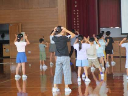 今日の啓明タイムは、ダンスをしました。始めての練習でしたが、音楽に合わせて自然に体を動かしていました。ふるさとふれあい広場で発表する予定です。