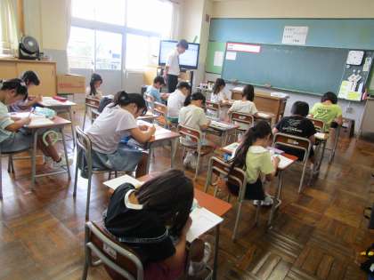 3年生は算数科、4年生は理科、5年生は書写の学習です。みんな集中して取り組んでいました。