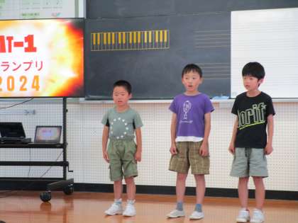 ハートフル委員会の子供たちが企画した「MT−1 グランプリ集会」の様子です。