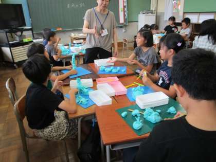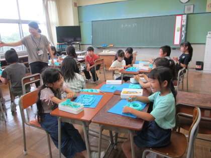 3・4年生は、図画工作科の学習をしていました。「未来のまち」を粘土で作り、楽しそうに紹介し合っていました。