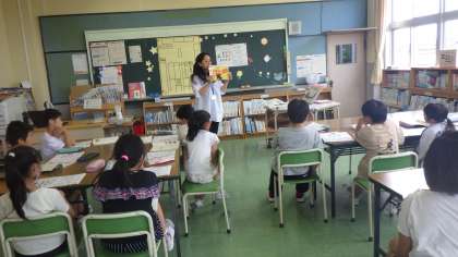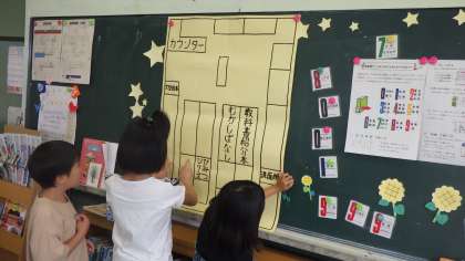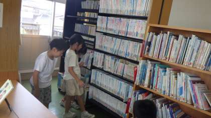 国語科の学習で、図書室に行って学習をしました。図書室の本は、分類番号によって並べられていることや、分類番号の意味を知りました。また、実際に百科事典を使って、昆虫について調べ、ワークシートにまとめていました。