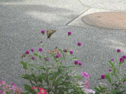 今朝、玄関ポーチのプランターの千日紅に、アゲハチョウが羽根を休め、蜜を吸っていました。いよいよ明日から2学期です。始業式は、エアコンの効いた音楽室で行います。皆さんが元気に登校してくるのを楽しみに待っています。