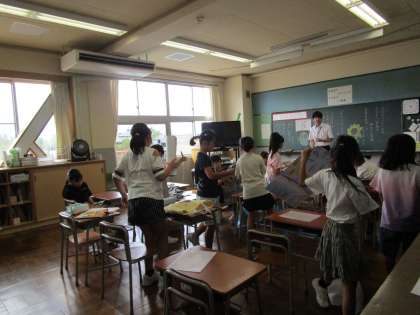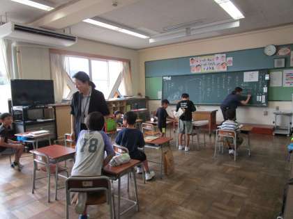 1・2年生、3年生教室では、応募作品等の宿題を見せ合ったり、提出したりしていました。夏休み中、よく頑張りました。