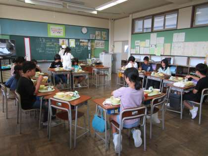 2学期の給食が始まりました。4・5年生、6年生の教室の給食の様子です。