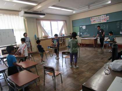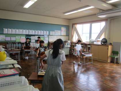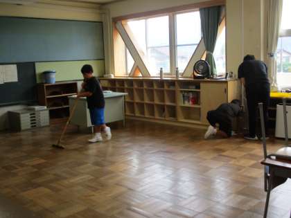教室の清掃をする子供たちの様子です。今日は、学級ごとに教室や階段、トイレ等を清掃しています。一生懸命に学校をきれいにしています。