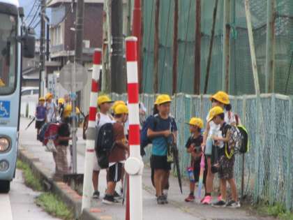 子供たちの登校時刻には、台風10号による大雨はやみました。安全に登校でき、安心しました。今日は、通常通り下校します。
