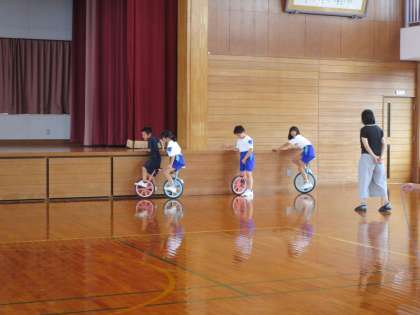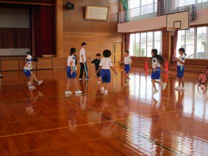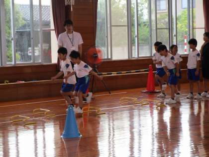 MTトレーニングの様子です。自分が選んだ種目に挑戦しています。ミニハードルは、2学期から取り入れた種目です。