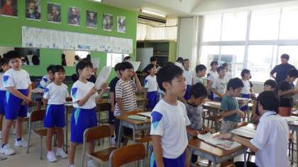 音楽会に向けて歌の練習をがんばっています。歌詞のリズムを確かめながら練習しました。