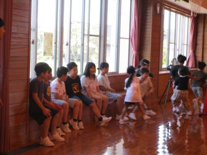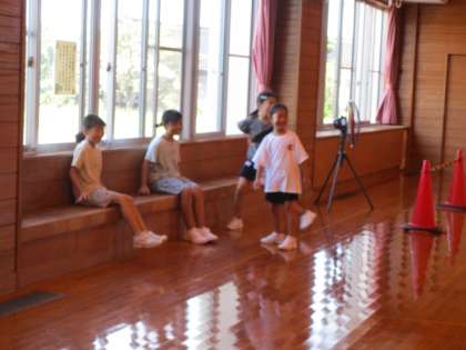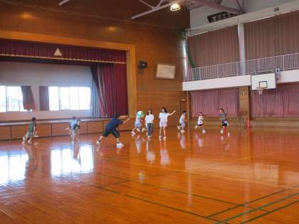 体育館でなかよく遊ぶ子供たちの様子です。楽しそうです。