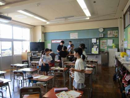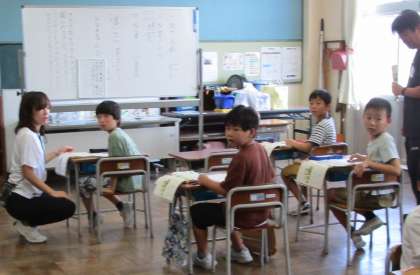 水橋学園校歌の作曲者、高原兄さんが来校されました。教室、校舎内、グラウンド等を案内しました。学習の様子も見ていただきました。1・2年生は、国語科、3年生は、外国語活動の学習をしていました。どんな校歌になるのか楽しみです。