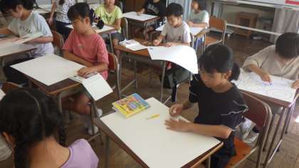 図画工作科では、国語の教科書に掲載されている詩や物語から想像したことを、絵で表現しています。