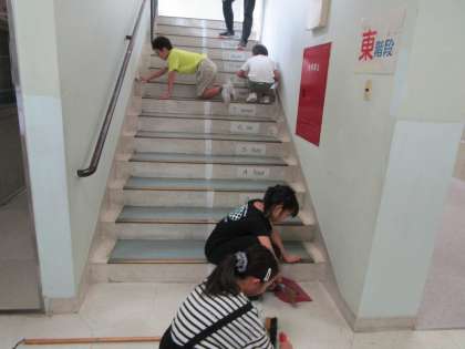 上級生や教職員に清掃の仕方を教わりながら、丁寧に掃除をしています。