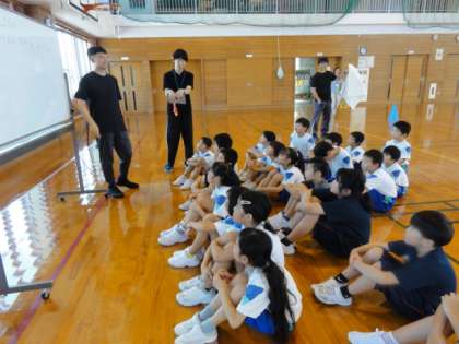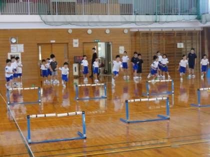 体育科のハードル走で、ALTの先生と一緒に学習をしました。ALTの先生が英語で学習課題や活動の仕方を話されます。子供たちは、ALTの先生が話されていることを理解しようとしっかり聞き、活動していました。
