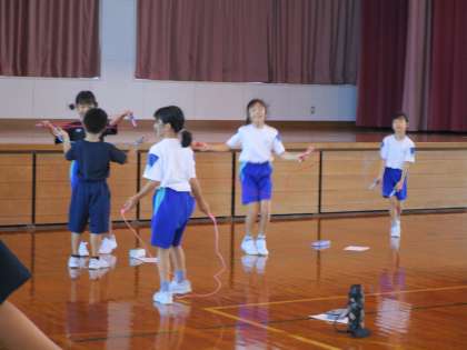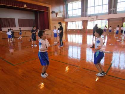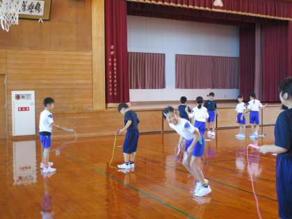 全校体育の時間です。できるようになりたい技にチャレンジしています。