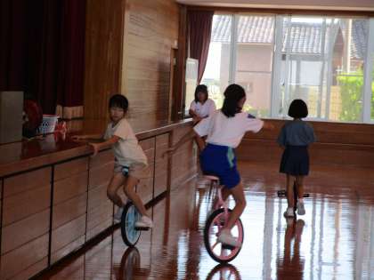今日のMTトレーニングの様子です。竹馬と一輪車に取り組む子供たちです。