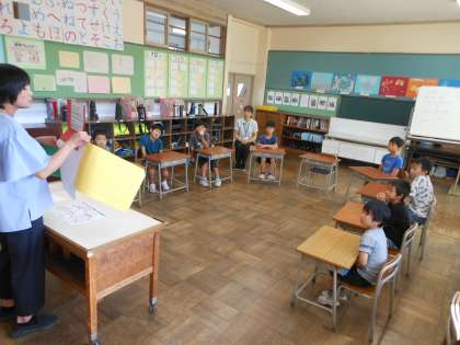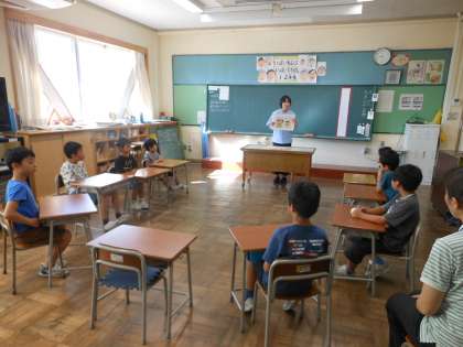 養護教諭から、「まいにちしっかり朝ごはん」についての話を聞きました。自分の朝食を思い出しながら、話を聞いていました。