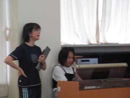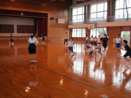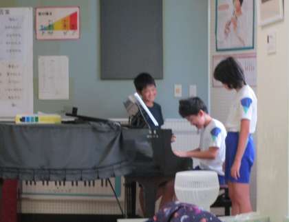 体育館では、ドッジボールやビーチボールで遊び、歓声が上がっています。音楽室では、ピアノやエレクトーンで曲を弾いて楽しんでいます。
