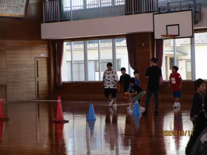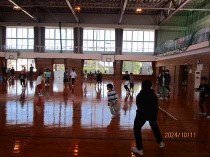 体育館では、バスケットボールやドッジボールで、大勢の子供たちが遊んでいました。