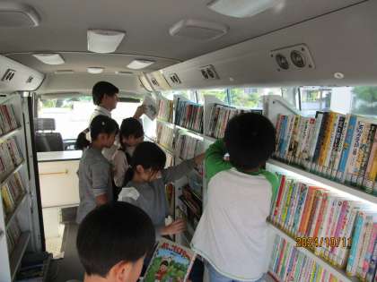 5時間目は、月1回の自動車文庫の日です。どの本にしようかと迷っているようです。