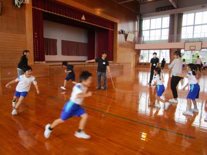 体育科での大縄跳び練習の様子です。リズムよく跳べるようになってきました。楽しそうです。
