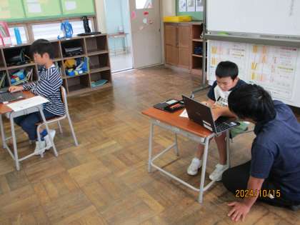 1・2年生は、生活科の学習です。探検に行く場所や道を調べています。