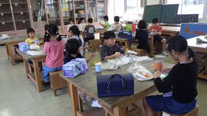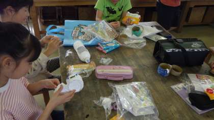 図画工作科では、「空きようきのへんしん」の学習をしています。空きようきに、紙粘土を付けて、動物や小物入れに変身させています。