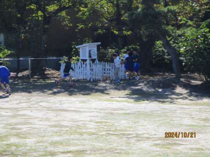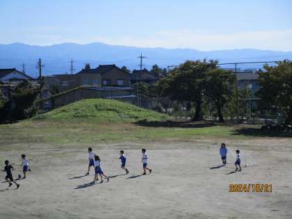 秋晴れのさわやかな天気です。グラウンドで元気に遊んでいます。