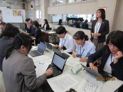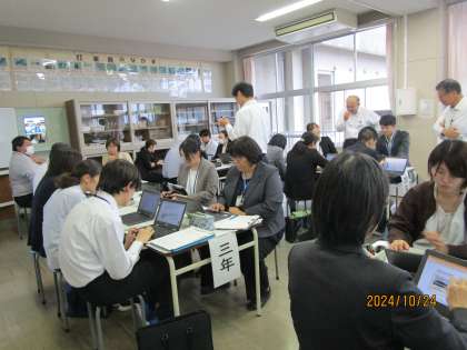 教育長をお迎えし、「主体的・対話的で深い学びの実現に向けた授業改善」について水橋地区の教員を対象に模擬授業をしていただきました。日頃の学習において大切にすべきことを実践例をもとに学ぶことができました。また、「水橋」について調べ、意見を交流し、学び合うことができました。