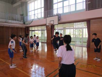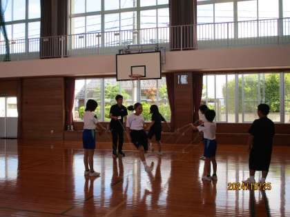 今日は、大縄2本を使った技や4本を使った技に挑戦しています。3年生も跳ぶコツをつかんだようです。なわとび発表会に向けて練習を重ねていきます。