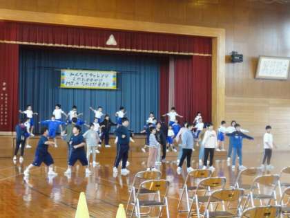 なわとび発表会の予行が終わり、16日の発表会が間近となりました。全校でのダンスの練習では、動きが大きくなってきました。