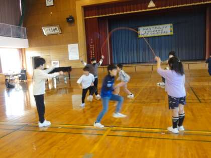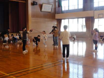なわとび発表会の予行が終わり、予行の振り返りを生かして、練習をしています。技がしっかりできるように、子供たちは真剣に取り組んでいます。