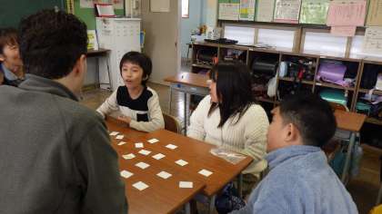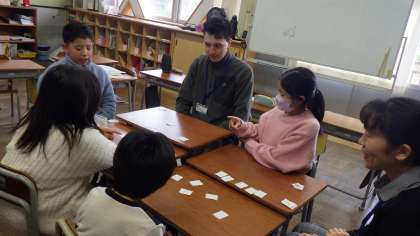 食べ物カードを使って、神経衰弱をしました。カードをめくる度に、「cherrys!」等と声を出して読み、盛り上がりました。