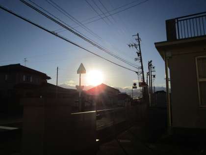 朝日がまぶしい朝です。元気に登校してきました。