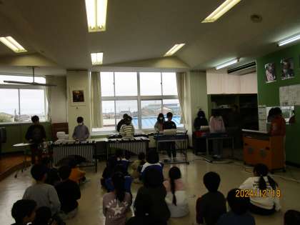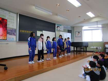 縄跳びでの得意技の発表を見て、拍手を送っていました。また、高学年の合奏に、聴き入っていました。