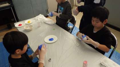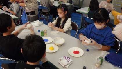 物づくり講座で、1・2・3年生は、「ひかるどろだんご」を作りました。泥団子に、漆喰を塗り、色を付け、表面を削りました。完成したきらきら光る泥団子を、嬉しそうに見せていました。