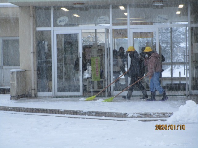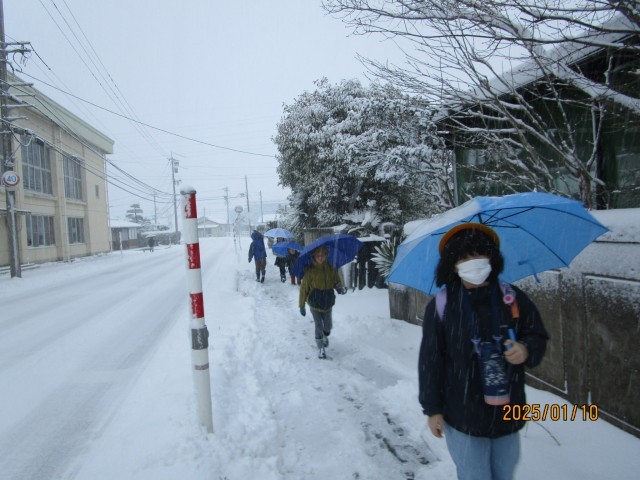 雪の中、元気に集団登校してきました。すぐに降り積もる児童玄関ポーチの雪を5年生が除雪してくれました。ありがとう。