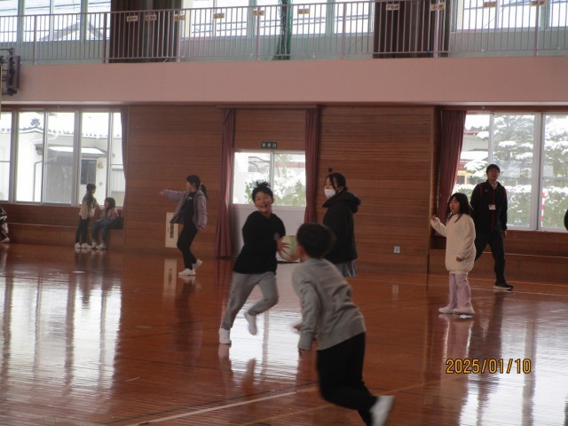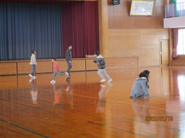 寒い体育館を元気いっぱい動き回って遊んでいます。