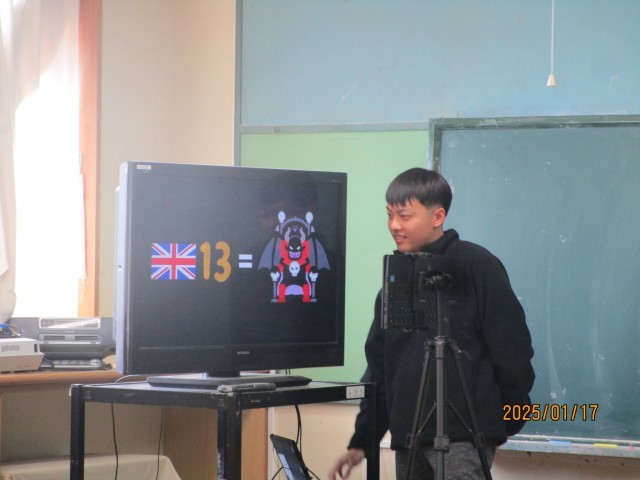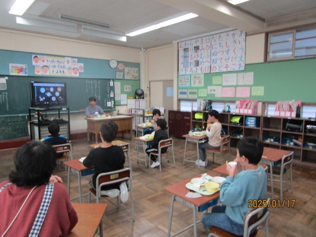 毎週金曜日の給食時間は、ALTの先生による「イングリッシュ プログラム」の日です。今日のテーマは、國によるラッキーナンバー、アンラッキーナンバーについてでした。1、2年生の教室では、クイズに一生懸命に考えていました。