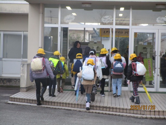穏やかな気候の朝です。元気に登校し、玄関で教員と挨拶を交わしています。