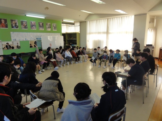 全校のみんなが楽しく遊ぶことができるように、体育館の使い方等について、児童総会を開き、話し合いをしました。理由をきちんと伝え、自分の意見を話していました。